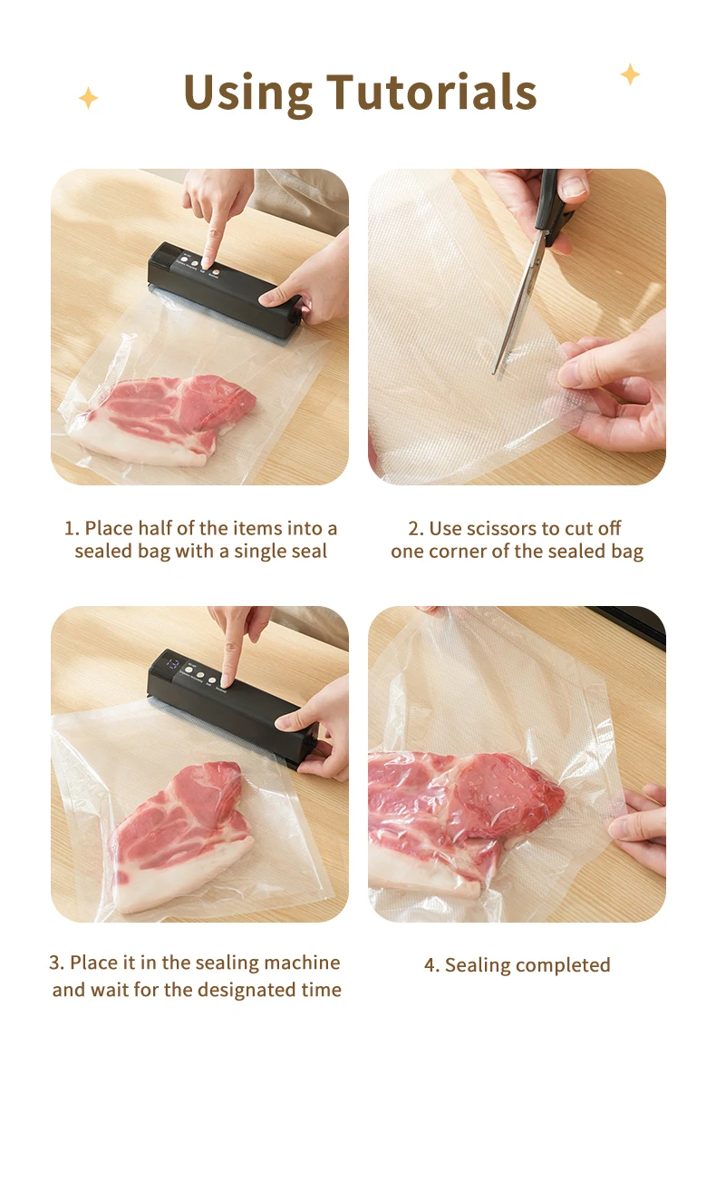 Comes with vacuum bags – perfect for snacks, fruits, meat & more.