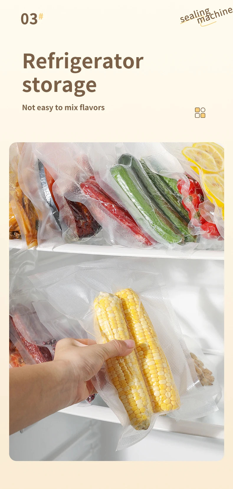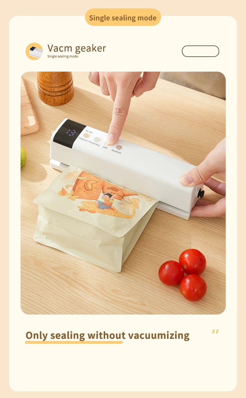 Comes with vacuum bags – perfect for snacks, fruits, meat & more.